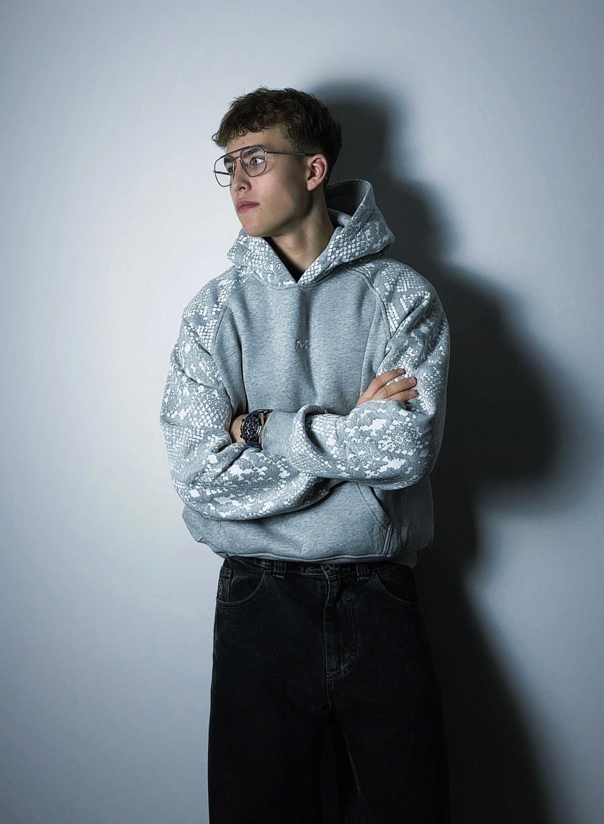Snake Print Hoodie (Floral Grey)
